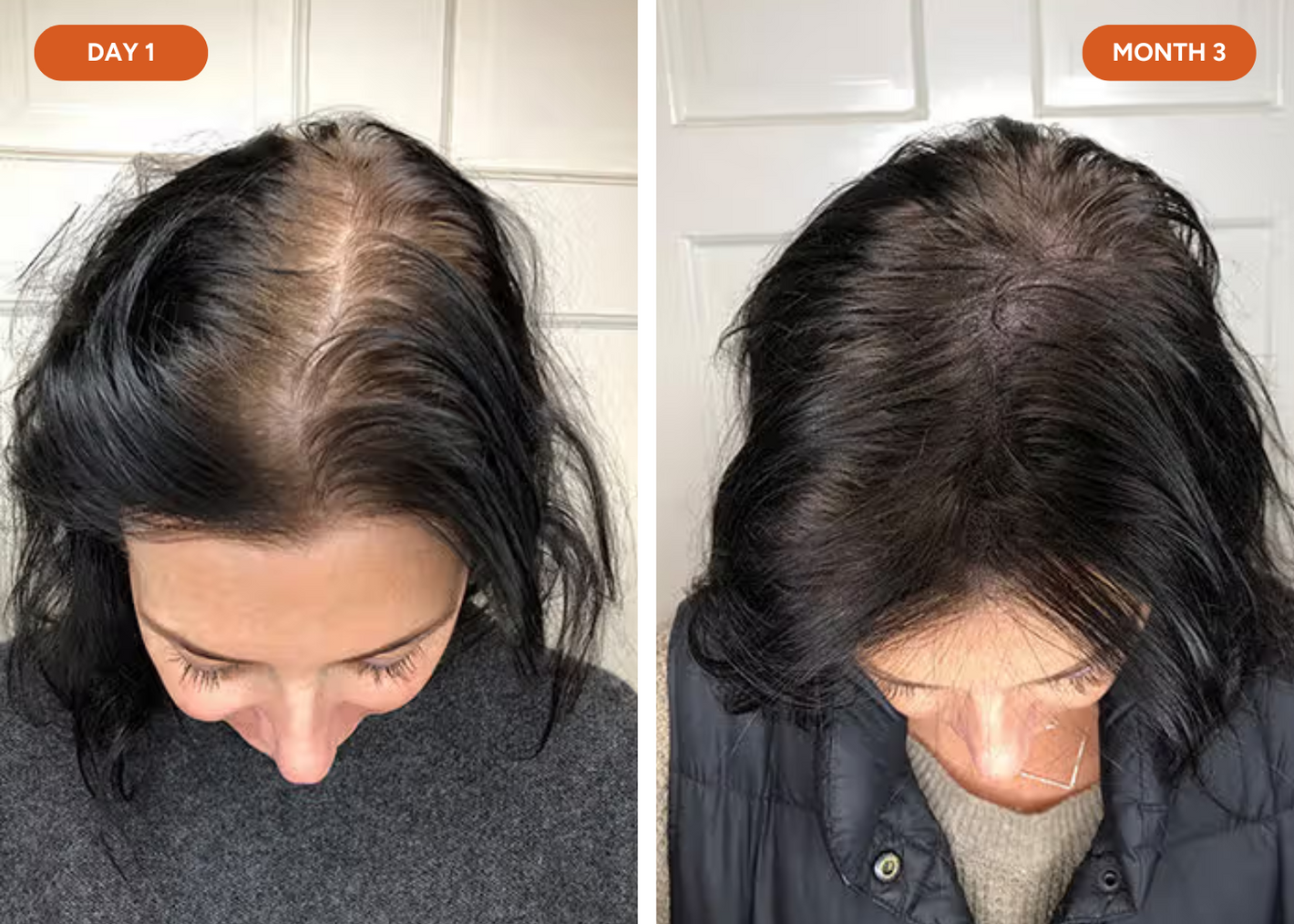 saw less visible scalp and a fuller-looking part line within 90 days.
