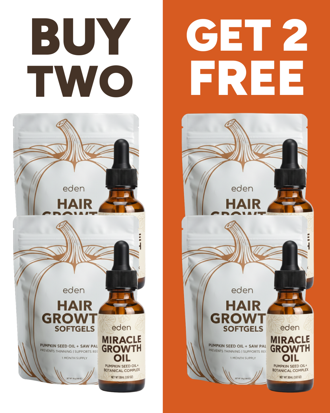 Hair needs specific vitamins and minerals to grow strong and healthy. Our treatment delivers zinc, omega fatty acids, and other essential nutrients directly to hungry follicles with the topical oil and systematically through the softgels.