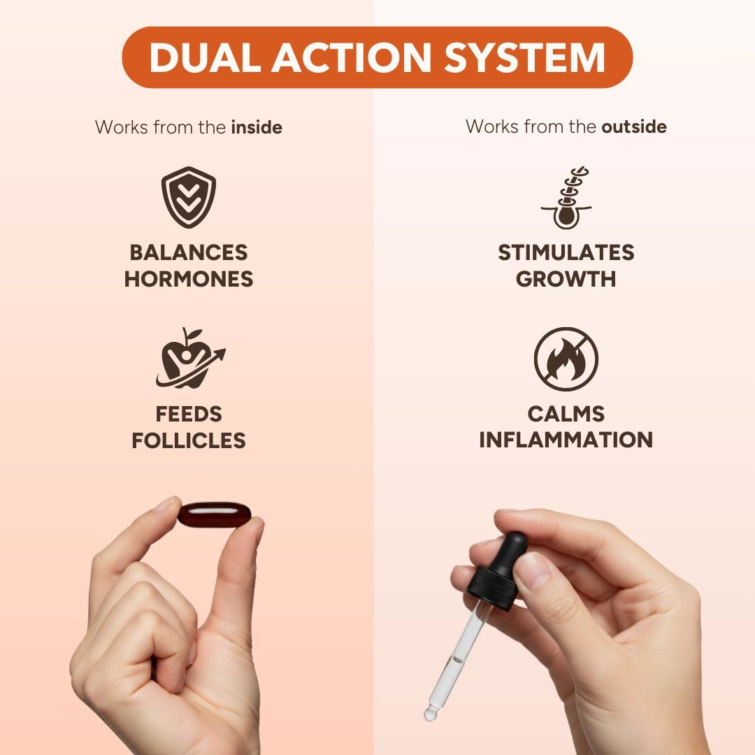 Plus, we work from inside AND outside your body. Your system gets balanced internally while your scalp gets direct treatment. No other solution is this comprehensive.