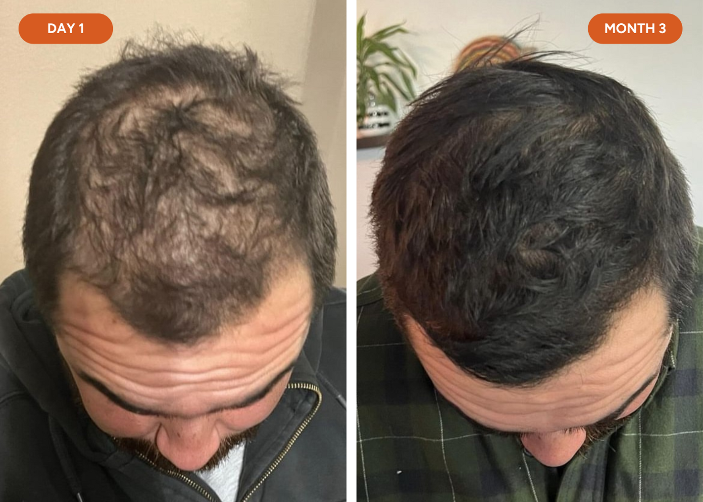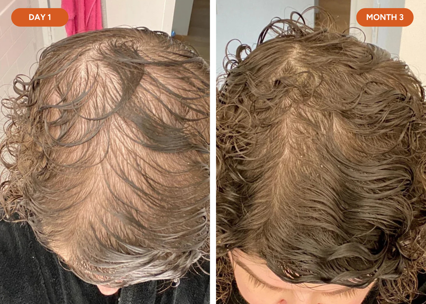Most users start noticing less shedding and new baby hairs within 3–4 weeks. Full results, like visibly thicker areas or filled-in spots, can show by month 2 or 3 with consistent use.
