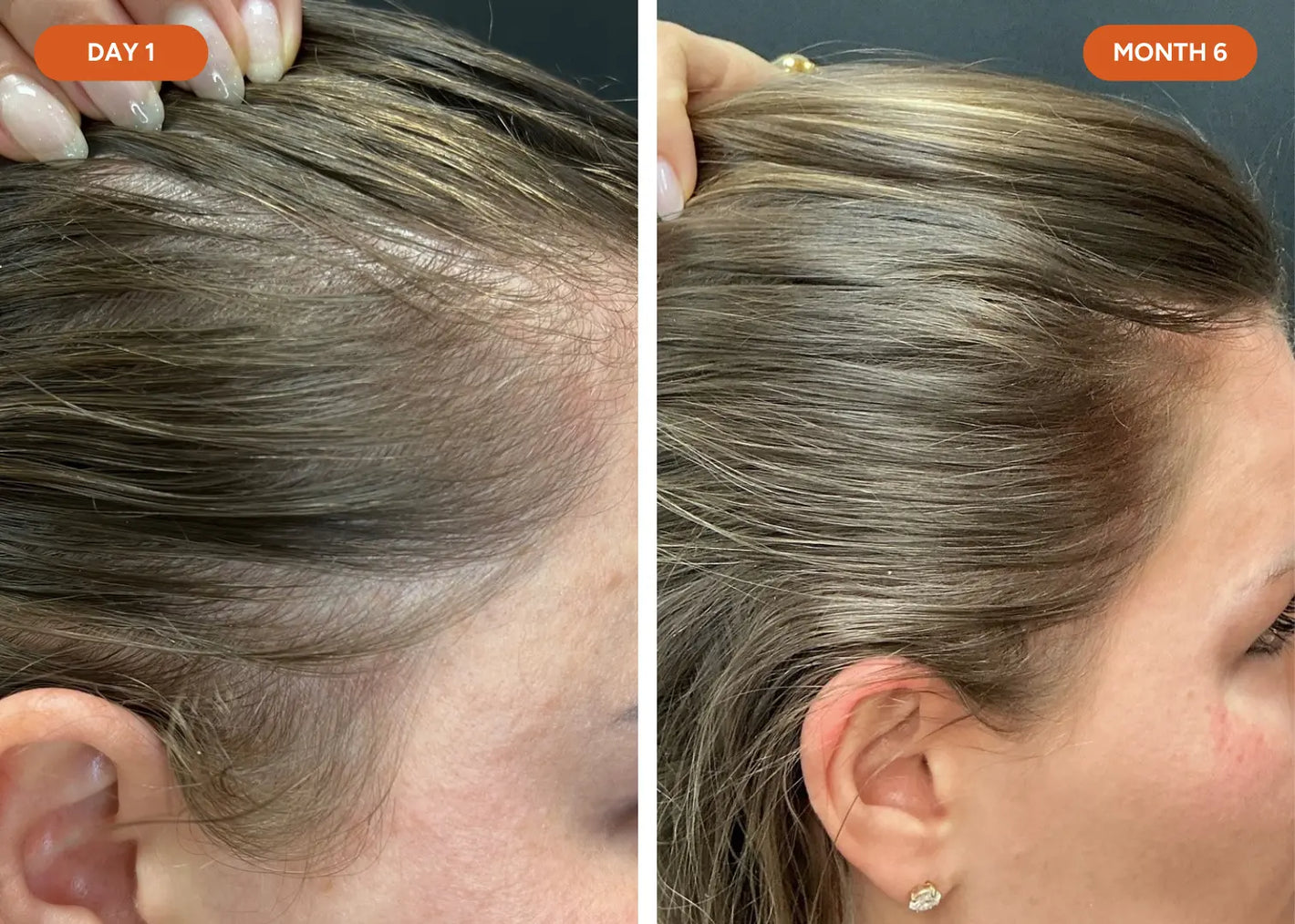 Baby hairs emerge and previously thinning areas fill in